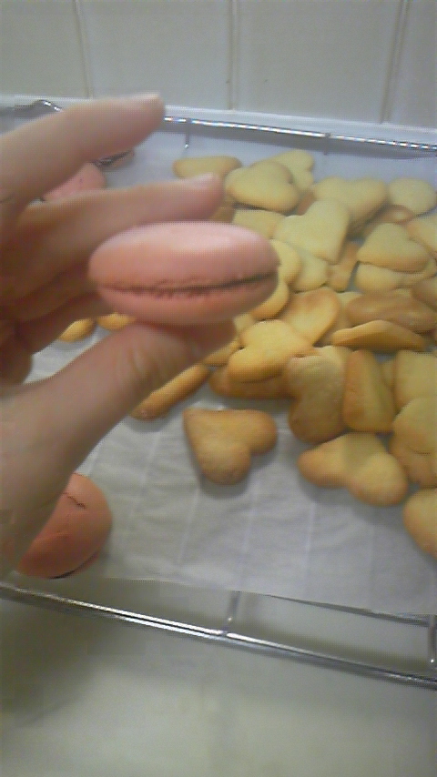 まかろおおおおん 作った! 一個だけ成功。 まあ食べれなくは無い感じ。 空気をあまり潰してなかったためか割れてるのがおおかった; リベンジしようとおもう。 誰か食べてくれ